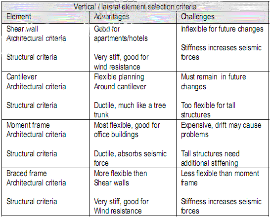 Vertical systems transfer the load of horizontal systems from roof to foundation, carrying gravity and/or lateral load. Although they may resist gravity or lateral load only, most resist both, gravity load in compression, lateral load in shear. Walls are usually designed to define spaces and provide support, an appropriate solution for apartment and hotel buildings. The four systems are: